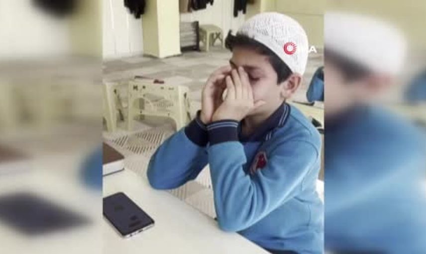 HATAY’DA BİR YILLIK HAFIZLIK EĞİTİMİNİ TAMAMLAYIP HAFIZ OLAN 11 YAŞINDAKİ YUSUF SAMİ ÖZTÜRK, TELEFONLA BABASINI ARAYARAK ‘BABA BEN HAFIZLIĞI BİTİRDİM’ SÖZLERİYLE HABER VERİRKEN GÖZYAŞLARINA HAKİM OLAMADIĞI ANLAR CEP TELEFONU KAMERASINA YANSIDI.