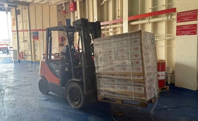 Mısır'ın El-Ariş Limanı'na yanaşan 17. "İyilik Gemisi"ndeki insani yardım malzemeleri, Gazzelilere ulaştırılmak üzere indirilmeye başlandı.