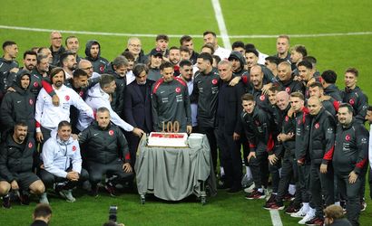 Ayrıca, Bulgaristan maçında A Milli Takım formasını 100. kez giyen Hakan Çalhanoğlu için saha ortasında bir kutlama gerçekleştirildi. Üzerinde "100" yazılı pastadan ilk dilimi, Türkiye Futbol Federasyonu Başkanı İbrahim Hacıosmanoğlu, Kaptan Çalhanoğlu'na hediye etti. Başkan Hacıosmanoğlu, Çalhanoğlu'na sarılarak onu kutladı ve ardından takım, teknik ekip ve yöneticilerle birlikte toplu bir fotoğraf çekimi gerçekleştirdi.