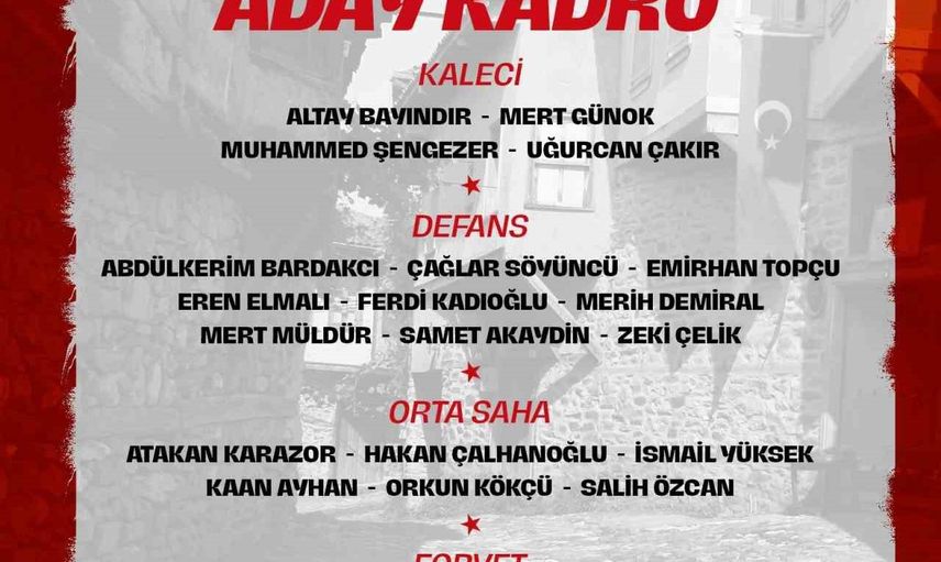 Kaleci: Altay Bayındır (Manchester United), Mert Günok (Beşiktaş), Muhammed Şengezer (RAMS Başakşehir), Uğurcan Çakır (Galatasaray)