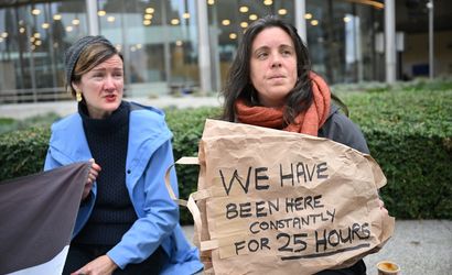 AB Komisyonu binası önünde bir araya gelen aktivistler, 25 saattir süren bir protesto düzenleyerek, Avrupa Birliği'nden İsrail'e baskı yapmayı sürdürmesini ve Tel Aviv'i savaş suçları nedeniyle sorumlu tutmasını talep etti. Protesto sırasında grup, uyku tulumları ve şemsiyelerle geceyi binanın önünde geçirdi.
