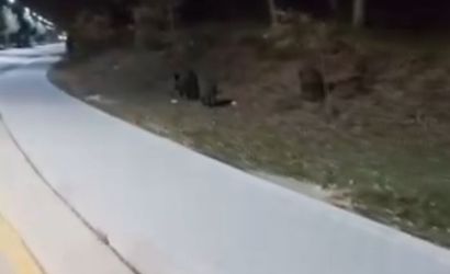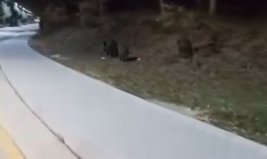 Aç kalan yaban domuzları BAİBÜ kampüsünde yiyecek aradı