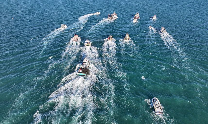Adana'da, Küresel Sumud Filosu'na destek vermek ve İsrail'in Gazze'ye yönelik saldırılarına karşı durmak amacıyla bir araya gelen balıkçılar, gemi ve tekneleriyle Akdeniz'e açıldı.