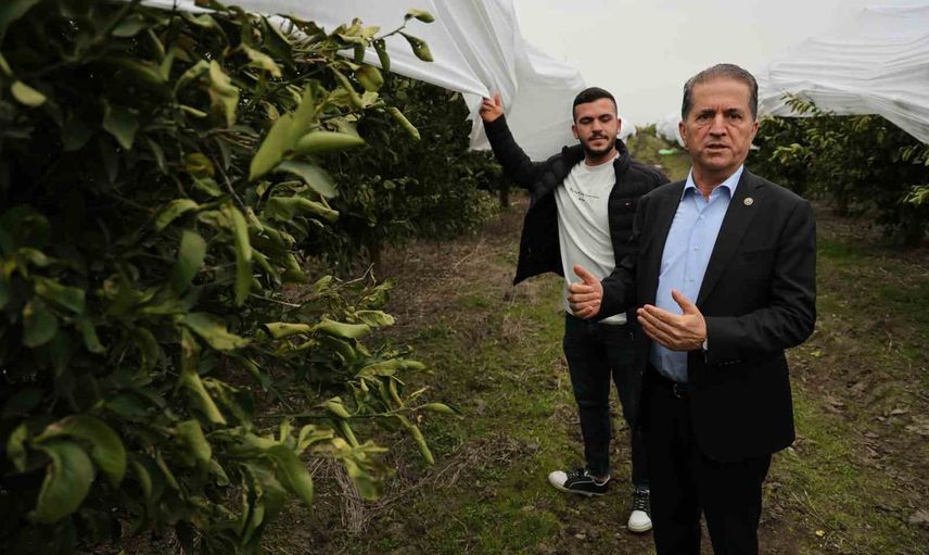 Adana'da çiftçi 15 dönüm limon bahçesini fileyle korudu