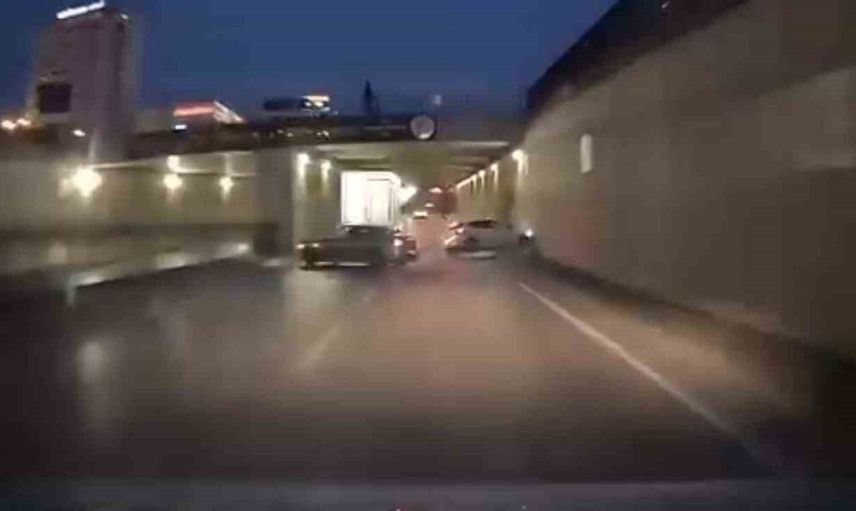 Çarpışmanın etkisiyle araçlar savrulurken olayın tamamı, çevredeki bir aracın araç kamerası tarafından kaydedildi. Görüntülerde tehlikeli şerit değişiminin kazaya yol açtığı görülüyor.