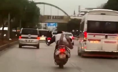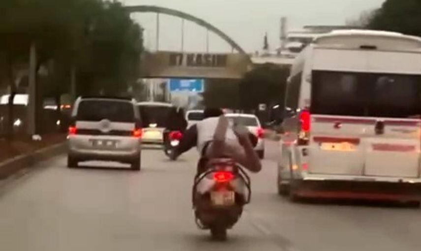Adana'da motosiklet sürücüsünün tehlikeli manevraları