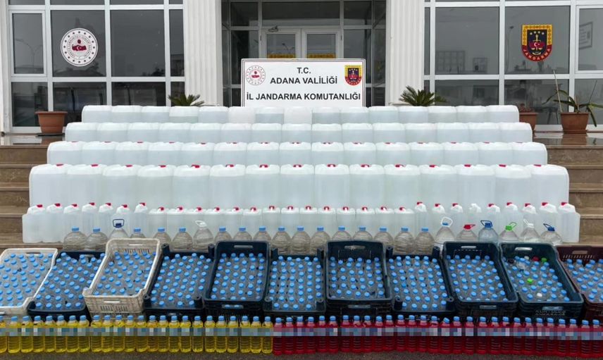 Adana merkezli operasyonda jandarma ekipleri, sahte alkol üretimi ve satışıyla mücadele kapsamında yürüttükleri çalışmada toplam 2 bin 495 litre sahte alkol ele geçirdi.