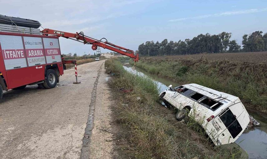 Adana’da servis minibüsü sulama kanalına devrildi