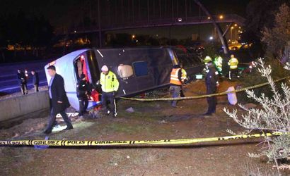Adana'da yolcu otobüsü beton bariyere çarparak devrildi