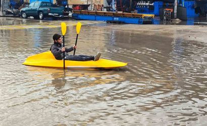 Fiber glas imalathanesinde çalışan Baran Dudukanlı, her yağmurda aynı manzarayla karşılaştıklarını belirterek, atölyede ürettikleri kanoyu suyla kaplı sokağa açtı. Dudukanlı, yolda karşılaştığı araçlarla sel ortamında ilerlerken, sürücülerin kanoya yol vermesinin ilginç görüntüler yarattığını söyledi.