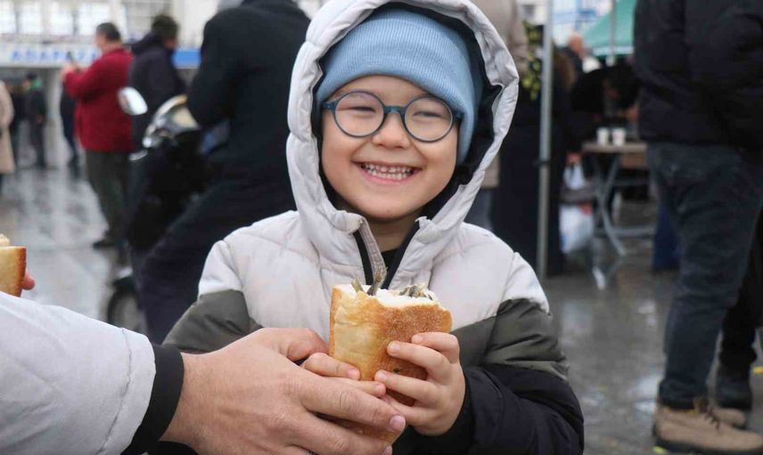 Gar Meydanı'nda düzenlenen etkinlikte tulum ve kemençe eşliğinde horon oynandı, yaklaşık 2 ton hamsi dağıtıldı