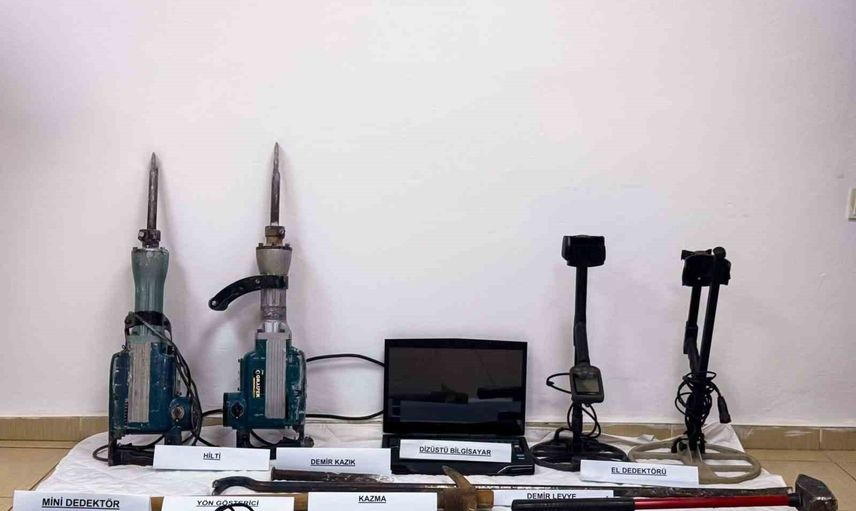 Operasyonda, kazı faaliyetlerinde kullanılan 2 el dedektörü, 1 mini dedektör, 1 yön gösterici, 1 dizüstü bilgisayar, 2 hilti ve çok sayıda kazı malzemesi ele geçirildi.