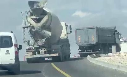 Asfalt yola beton döken araç vatandaşlarca görüntülendi