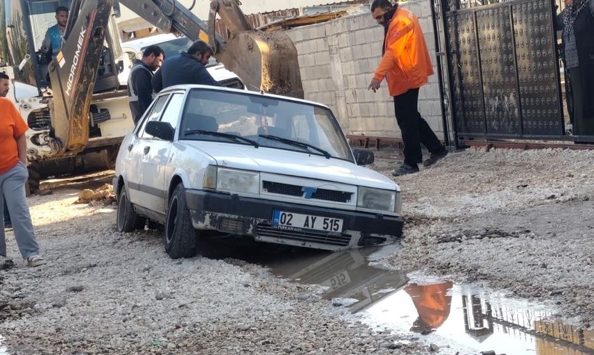 Adıyaman'da meydana gelen bir olayda, bir otomobil, altyapı çalışmaları sonrasında doldurulan bir yolda oluşan çökme sonucu çukurda mahsur kaldı.