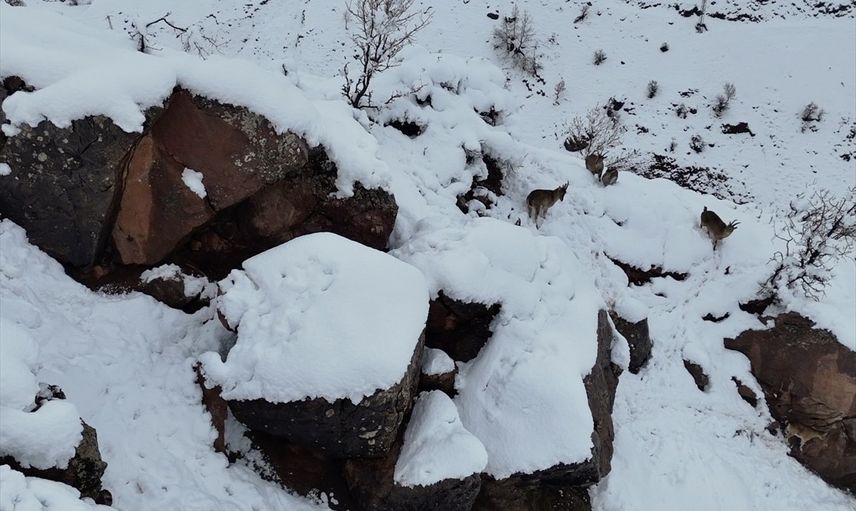 Adıyaman'da sürü halinde yiyecek arayan yaban keçileri dron kamerasıyla kaydedildi.