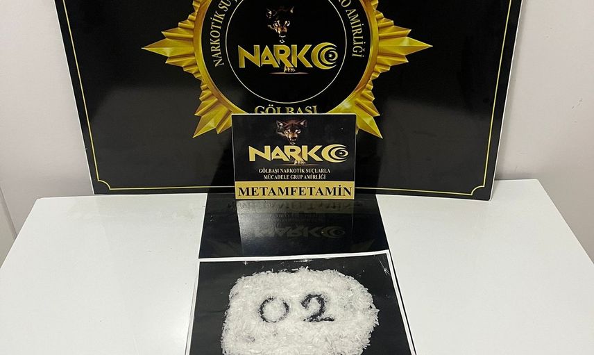 Gölbaşı Narkotik Suçlarla Mücadele ekipleri şüphe üzerine durdurdukları bir aracı, Gölbaşı Cumhuriyet Başsavcılığı talimatıyla aradı. Aramada toplam yaklaşık 63 gram metamfetamin ile 3,6 gram sentetik kannabinoid ele geçirildi.