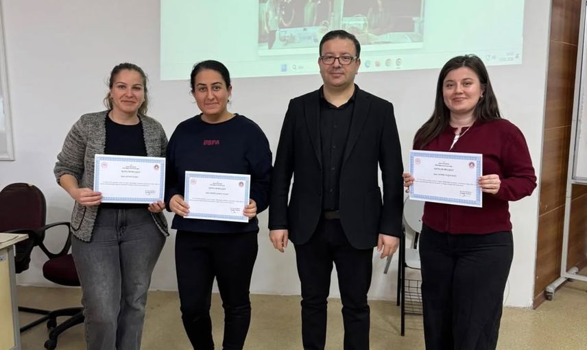 Eğitim sonunda katılımcılara verilen katılım belgeleri, Başhekim Yardımcısı Doç. Dr. Onur Yazıcı, Başhemşire Gülsüm Pekçetin ve Başhemşire Yardımcısı Gülsüm Orhan tarafından takdim edildi.