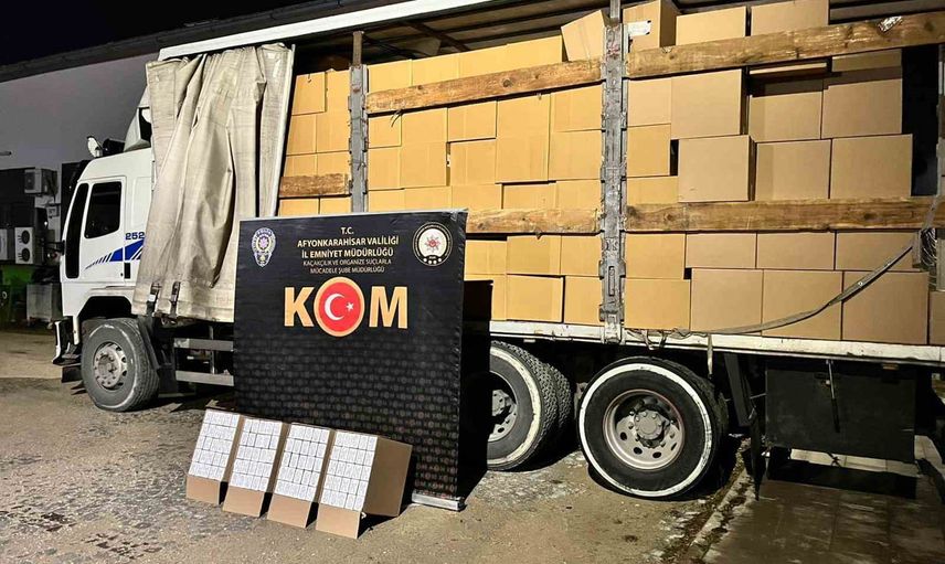Afyonkarahisarda gerçekleştirilen yol kontrolü sırasında polis ekipleri şüphe üzerine bir kamyonu durdurdu. Yapılan aramada, koliler içerisinde 6 milyon 190 bin adet boş, sahte bandrollü makaron ele geçirildi.