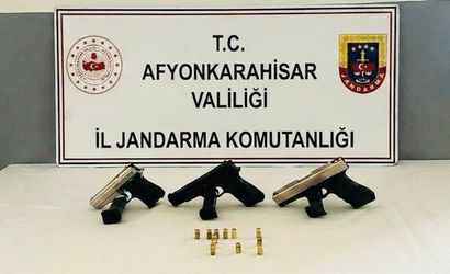 AFYONKARAHİSAR'DA JANDARMA TARAFINDAN YAPILAN OPERASYONLARDA DÜĞÜNLERDE HAVAYA ATEŞ AÇAN 3 KİŞİ GÖZALTINA ALINIRKEN OPERASYONDA 3 TABANCADA ELE GEÇİRİLDİ.