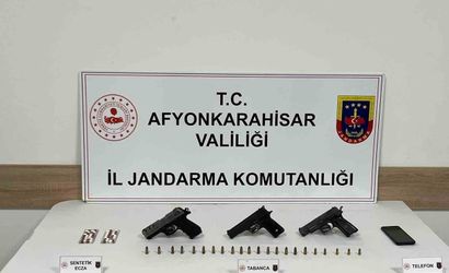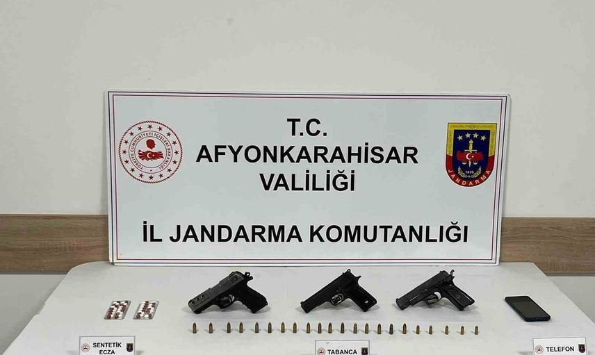 Afyonkarahisar İl Jandarma Komutanlığı ekipleri, kent merkezinde gerçekleştirdikleri operasyonda bir adrese baskın düzenledi. Baskın sırasında yapılan aramada 26 adet uyuşturucu hap, 3 ruhsatsız tabanca ve mermiler ele geçirildi.