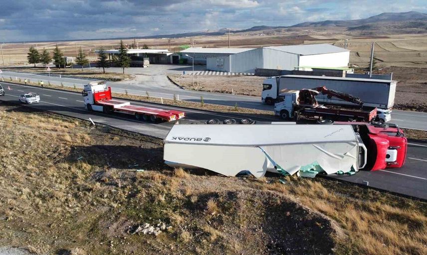 Kazada, sürücü Y.E. idaresindeki 33 AVP 144 plakalı tırın henüz belirlenemeyen bir sebeple direksiyon hakimiyetini kaybettiği ve aracın savrularak yol ortasına devrildiği belirtildi.