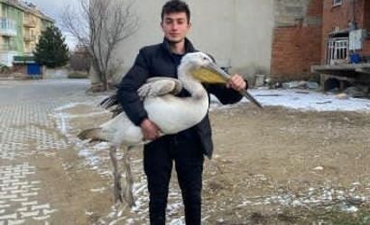 Afyonkarahisar'da sokakta bulunan yaralı pelikan koruma altına alındı