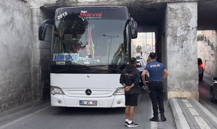 Ağrı 1970 SK Takım Otobüsü Alt Geçide Sıkıştı