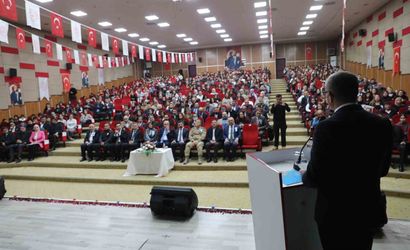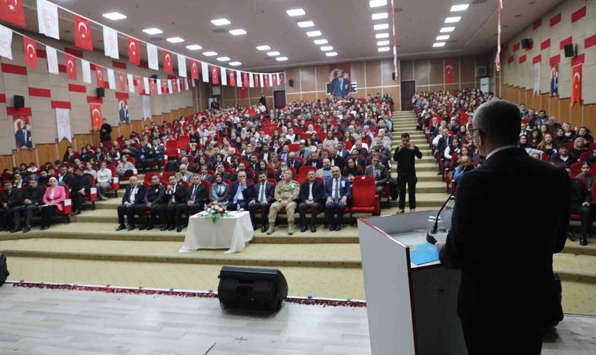 İl Milli Eğitim Müdürü Hasan Kökrek konuşmasında öğretmenliğin bir meslekten öte gönülle yapılan bir ideal olduğunu ifade etti. 'Öğretmenlik öyle bir meslektir ki takvimle sınırlanamaz, mesai saatlerine sığamaz, kelimelerin bile anlatmakta zorlandığı bir anlam taşır.' diyen Kökrek, öğretmenlerin toplumun kaderini şekillendiren bir ışık olduğuna dikkat çekti. 'Bir çocuğun elinden tutan her öğretmen, aslında ülkenin yarınlarına en değerli yatırımı yapmaktadır.' ifadelerini kullandı ve Atatürk'ün 'Eğitimdir ki bir milleti ya özgür, bağımsız, şanlı ve yüksek bir toplum hâlinde yaşatır ya da esaret ve sefalete terk eder.' sözünün yol gösterici olduğunu vurguladı.
