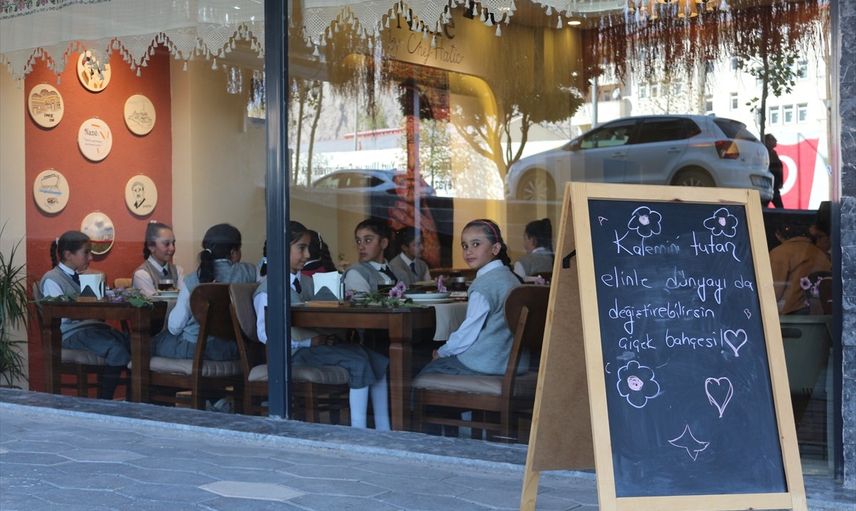 Ağrı'nın Doğubayazıt ilçesinde esnaflık yapan Hatice Sarıgül, 11 Ekim Dünya Kız Çocukları Günü dolayısıyla kırsaldaki kız çocuklarını restoranında çiçeklerle karşılayıp yemek ikram etti.