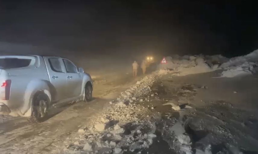 112 Acil Çağrı Merkezi'ne yapılan ihbar üzerine, Kağızman-Ağrı karayolu üzerinde, Başkent köyü'ne yaklaşık 5 kilometre mesafede tipi nedeniyle araçlarıyla mahsur kalan iki vatandaşın bulunduğu bildirildi.