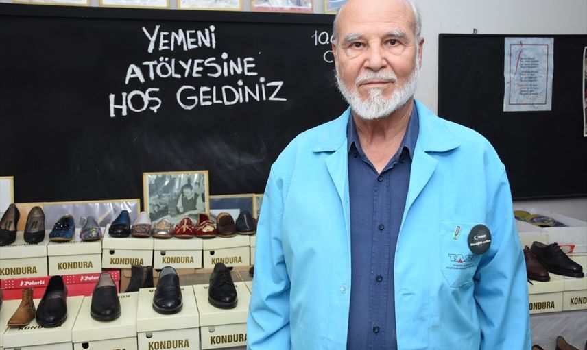 Karaman'da yaşayan 83 yaşındaki Ahmet Sağkaya, çocuk yaşta başladığı deri ayakkabı ve yemeni yapımını, 2 yıldır gönüllü olarak verdiği kursta kadınlara öğretiyor.