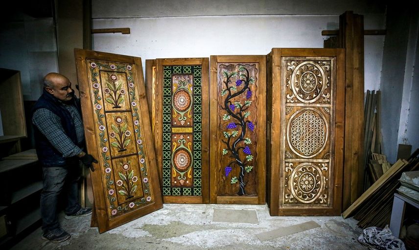 Bursa'nın İznik ilçesinde ikamet eden 35 yaşındaki Fahri Kaptan, kendi kendine öğrendiği ahşap oyma sanatı ile kapı, masa, dolap ve sehpa yapıyor.