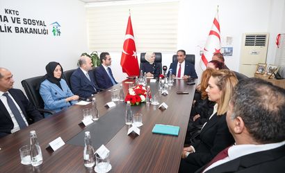 Aile ve Sosyal Hizmetler Bakanı Mahinur Özdemir Göktaş, çeşitli temasları kapsamında bulunduğu Kuzey Kıbrıs Türk Cumhuriyeti'nde (KKTC), KKTC Çalışma ve Sosyal Güvenlik Bakanı Sadık Gardiyanoğlu ile heyetler arası toplantıda bir araya geldi.