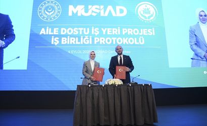 Aile ve Sosyal Hizmetler Bakanı Mahinur Özdemir Göktaş, Aile ve Sosyal Hizmetler Bakanlığı ile Müstakil Sanayici ve İşadamları Derneği (MÜSİAD) arasında "Aile Dostu İş Yeri Projesi İşbirliği Protokolü" imza törenine katılarak konuşma yaptı.
