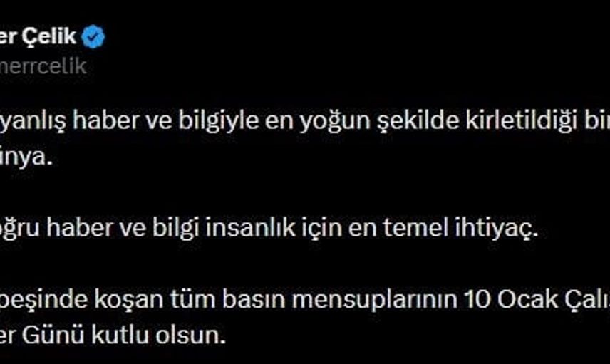 Çelik, gerçeğin peşinde koşan gazetecilerin gününü kutlayarak, günümüz dünyasında yanlış haber ve bilgiyle zihinlerin yoğun şekilde kirlenmeye başladığına dikkat çekti ve doğru haber ile bilginin insanlık için temel ihtiyaç olduğunu vurguladı.