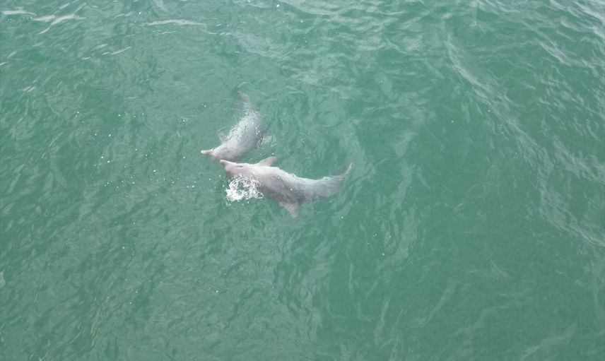 Düzce'nin Karadeniz'e kıyısı olan tek ilçesi Akçakoca açıklarında su yüzeyine çıkan yunuslar görüntülendi.