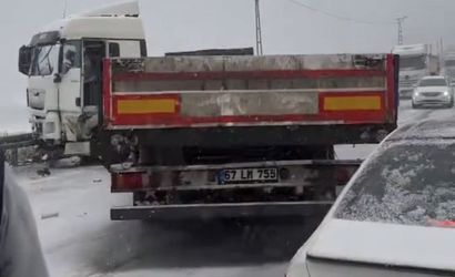 Bu sırada küçük araçlar güvenlik şeridinden kontrollü olarak ilerleyebiliyor. Olay nedeniyle bölgede araç kuyrukları oluşurken, sürücülerden trafikte dikkatli olmaları istendi.