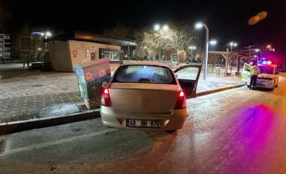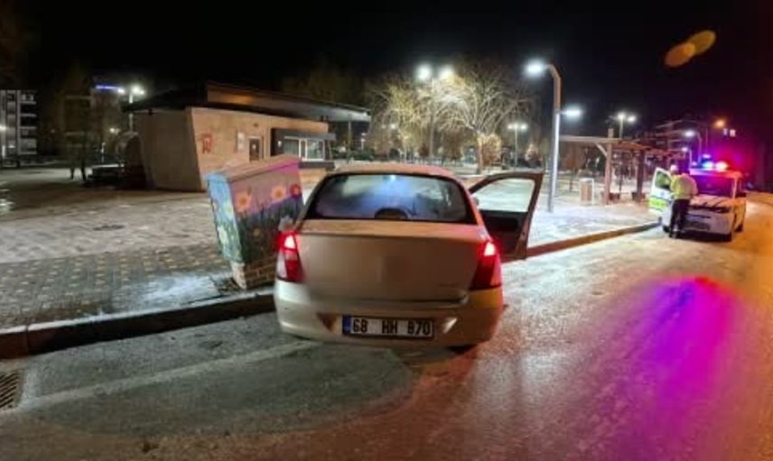 Aksaray'da, alkol aldıktan sonra direksiyon başına geçen 20 yaşındaki aday sürücü Mustafa Y., 68 HH 870 plakalı otomobiliyle yolun buzlu olduğu virajda frene basınca kontrolü kaybetti. Araç kaldırıma çıkarak bir elektrik panosuna çarptı.