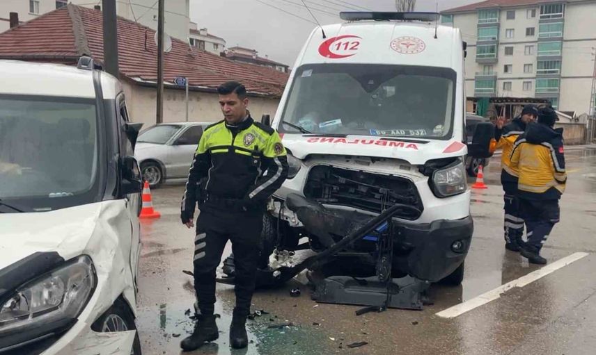 Çarpışma sonucu ambulans sürücüsü Ö.I., ambulansta bulunan P.D. (34), E.H.Z. (42), ambulanstaki hasta G.A. (49) ve hasta yakını S.K. (42) ile hafif ticari araç sürücüsü M.A. ve araçtaki yolcular A.D.A. (52) ve Z.A. (53) olmak üzere toplam 8 kişi yaralandı.