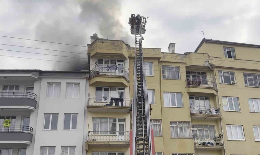 İhbar üzerine adrese itfaiye, sağlık ve polis ekipleri sevk edildi. Olay yerine hızlıca ulaşan itfaiye ekipleri, uzatılan merdivenle çatı katına çıkarak müdahale etti ve yangın büyümeden söndürüldü.