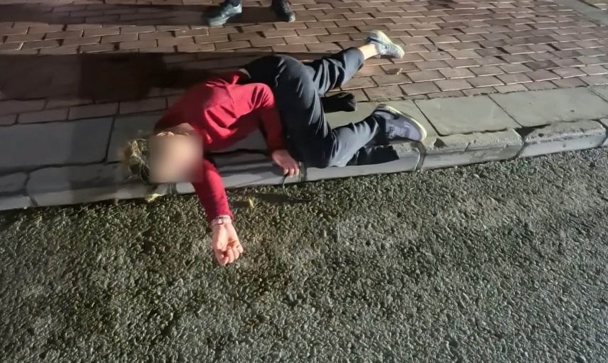 Aksaray'da park girişinde gergin anlar: Kaldırıma yatan kadın polisi görünce kaçmak istedi