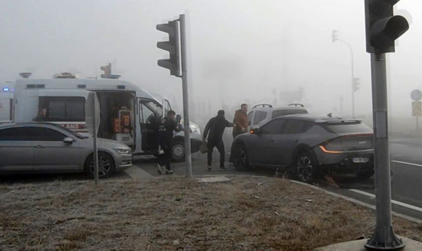 Aksaray'da sisli havada 5 araçlı zincirleme kaza: 1 yaralı