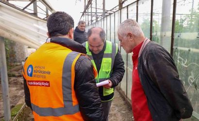 Antalya Büyükşehir Belediyesi ekipleri bölgedeki seralarda inceleme yapıyor