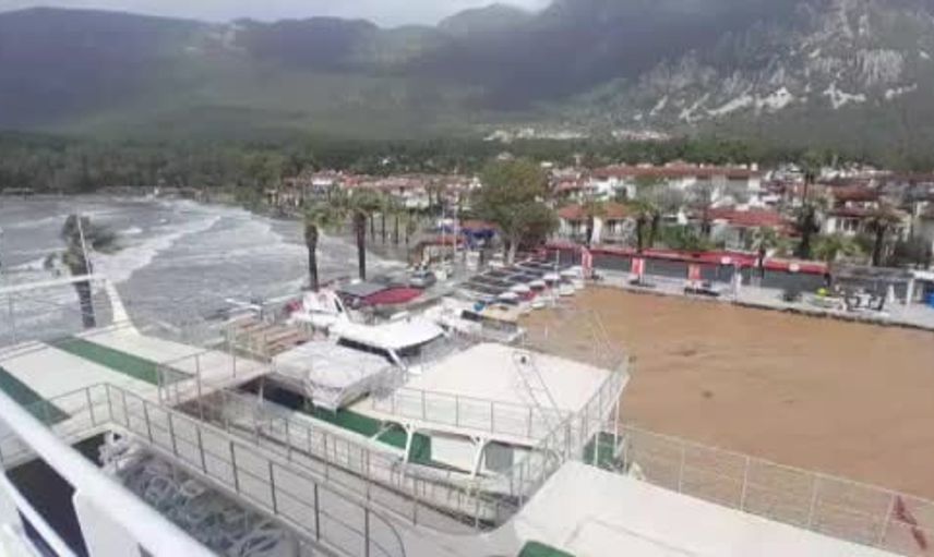 Muğla'nın Ula ilçesindeki Akyaka ve Gökçe Sahili'nde etkili olan olumsuz hava koşulları