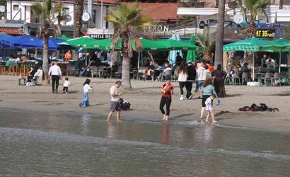 Hava sıcaklığının 17-18 dereceye kadar yükseldiği ilçede vatandaşlar güzel havanın keyfini sürdü; çocuklar denizde oynarken, yürüyüş yapanlar sahil boyunca vakit geçirdi. Kafeler de gün boyunca doldu.