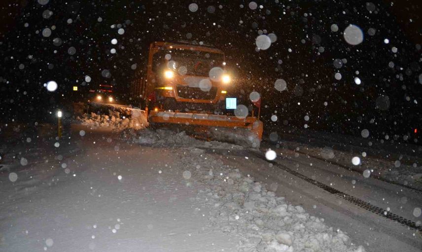 Karayolları Bölge Müdürlüğü ekipleri, yolun kapanmaması için yoğun mesai yapıyor. Çok sayıda iş makinesiyle kar temizleme ve tuzlama çalışması yürütülürken, bölgede kar kalınlığının yer yer 10 santimetre'ye ulaştığı öğrenildi.