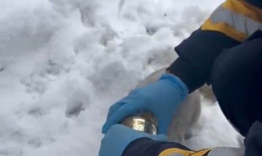 Elazığ'ın Alacakaya ilçesinde görev yapan 112 Acil Sağlık Hizmetleri personeli, dönüş sırasında başı konserve tenekesine sıkışmış bir kedi fark etti.