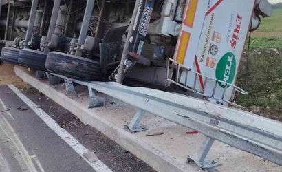 Kırklareli'nin Lüleburgaz ilçesine bağlı Alacaoğlu köyü yolunda, çiftliğe yem taşıyan bir tırın köprü üzerinde devrilmesi sonucu maddi hasarlı trafik kazası meydana geldi.