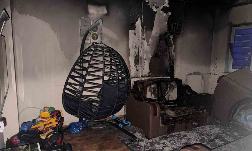 Ekiplerin müdahalesiyle alevler kontrol altına alınsa da, dairenin salon odası tamamen yanarak kullanılamaz hale geldi.