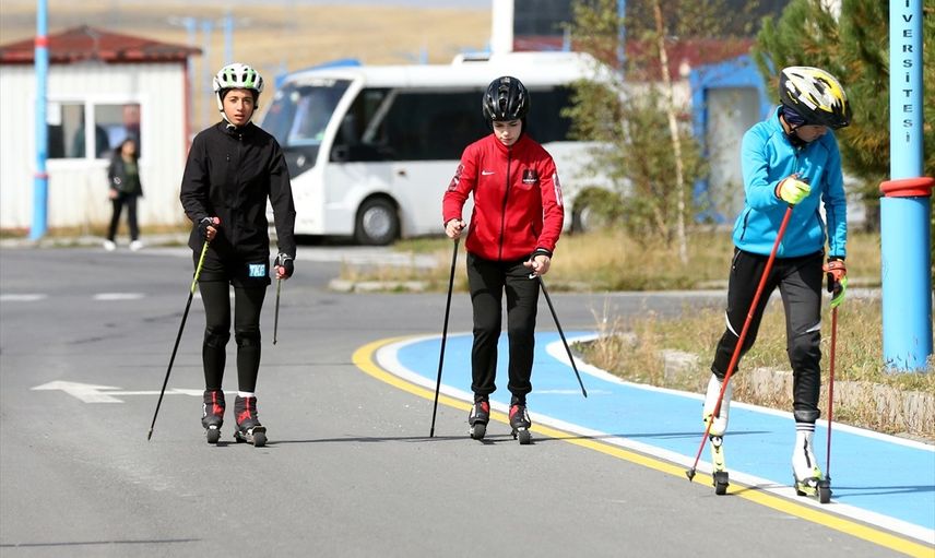 Ardahan'da 10 Eylül tarihinde kampa giren ve kış sezonunda düzenlenecek organizasyonlara hazırlanan 18 genç sporcu, Ardahan Üniversitesi kampüsündeki asfalt yolda 15 gün boyunca tekerlekli kayak antrenmanı yaptı.